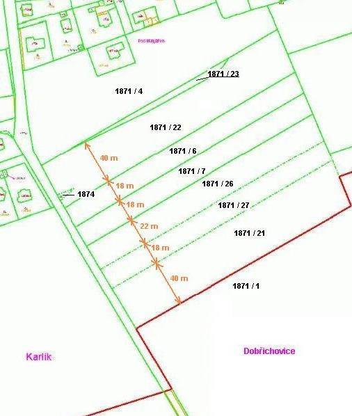 Plánek území mezi Karlíkem a Dobřichovicemi Zdroj: http://www.katastralnimapa.cz