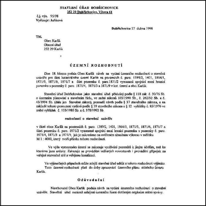 Úvod > Obecní úřad > Výstavba v obci a Územní plán > Stavební uzávěra z roku 1998 > Stavební uzávěra z roku 1998